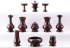 ![]() 玄緋色帯金入 (花立・飯器・香炉・茶器・火立・線香差) |